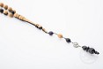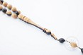 Abanoz, tropikal bölgelerde yetişen bazı ağaçlardan elde edilen odundur. Oldukça sert yapıdadır ve çok iyi cila tutar. En içteki öz bölümünün simsiyah olması nedeniyle birçok ülkede siyah renk anlamında kullanılır.Geniş gövdesi ve simsiyah rengi ile tanınan abanoz ağacından elde edilen malzemenin,siyaha yakın renkte ve ağır olanı “en iyi” kabul edilir.Tesbih yapımında kullanılan malzeme ise ağacın orta bölümünden 30 - 100 cm çapında kütüklerden elde edilir. Abanoz çok sert bir odundur ve parıltılar saçacak kadar iyi cila tutar.Bu özellikleriyle öbür odunlara hiç benzemediği için eski çağlardan beri çok değerli sayılmıştır.Tevrat' ta tarihi Sur kentindeki abanoz ticaretinden söz edilir,Binbir Gece Masallarında anılan değerli mallardan biri de abanozdur.Eskiden krallar abanozdan yapılmış asalar kullanır ve zehirin etkisini giderdiği inancıyla,içkilerini abanoz kaplardan içerlermiş.Rengi, dayanıklılığı, sertliği ve iyi cila tutma özelliği dolayısıyla uzun yıllar önce başlayan abanozdan tesbih yapımı ise günümüzde de yaygındır.
